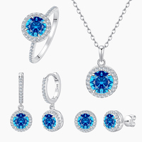 مجموعة مجوهرات للنساء من الفضة الإسترلينية الدائرية من الزركون الأزرق خواتم بحجر البحر أقراط مرصعة بدلاية وقلادة