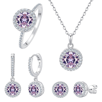 مجموعة مجوهرات رومانسية من الفضة الإسترلينية الفاخرة الدائرية الرائعة 12 قطعة من حجر الميلاد الأرجواني الفاتح من الزركون للنساء